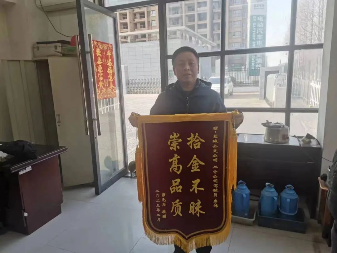 “真的太感谢你们了,要不是你们,我的笔记本电脑不知道什么时候才能找回来!”2月3日,市民茆先生将一面锦旗送到23路公交调度室,表达了自己对23路驾驶员李伟拾物不昧行为的衷心感谢。