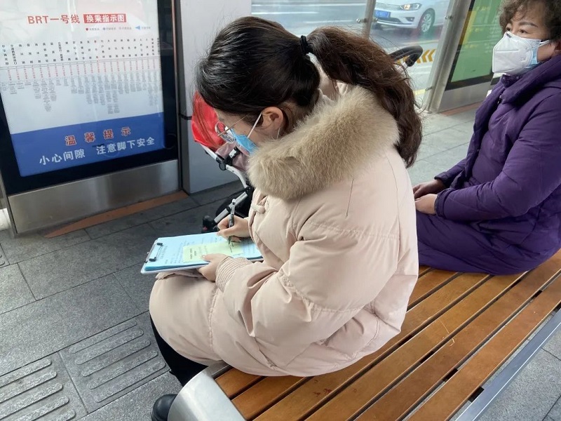 上午9时许,志愿者们来到解放路青年路BRT站台,向乘客介绍站台增设的“民意征集箱”,邀请乘客结合乘车体验写下对盐城公交营运服务的意见和建议。同时,开展“公交出行问卷调查”,向市民征集关于公交线网规划、文明服务、换乘便捷度及候车时长等方面的反馈意见,对乘客提出的线路换乘、乘车防疫检查标准等问题进行解答。