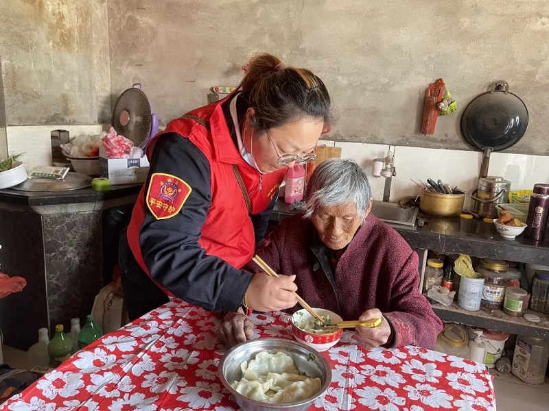 来到老人家中,志愿者们送上米面等生活用品,给老人拖地、打扫屋子,帮助老人干起了农活。中午大家围在桌前,一起洗菜、剁馅、和馅,为老人包起了饺子。