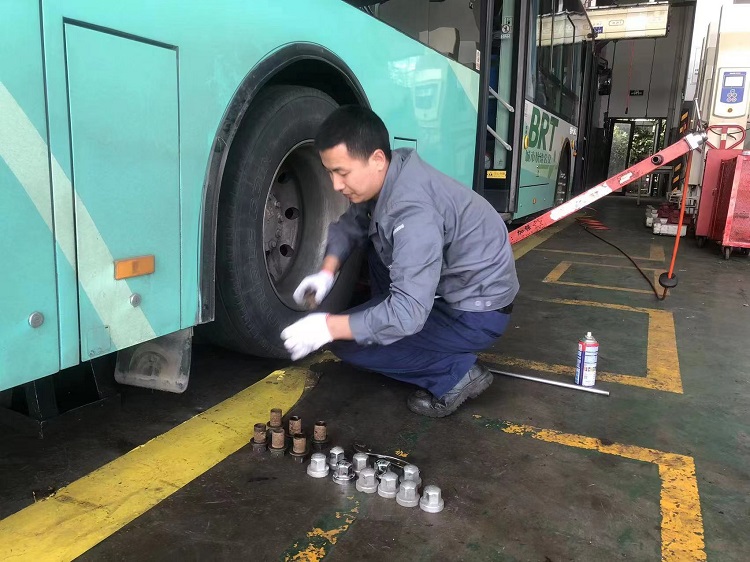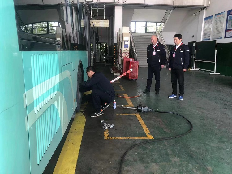 本次技能比武的主要设有专业技术轮胎拆装大比拼及各项设备实施标化准规范两个项目,共有八人参加了此次竞赛。比赛人员分为两组同时对车辆的右后轮进行拆装,裁判们按照安全规范操作标准对操作前准备、操作过程、工具使用和文明生产等四个方面进行打分。通过对轮胎拆卸安装的步骤、注意事项的测评,了解维保人员的实际操作水平,考察了维修人员对维修工作流程的细节及安全事项,8名维修人员都顺利地完成了轮胎拆装。