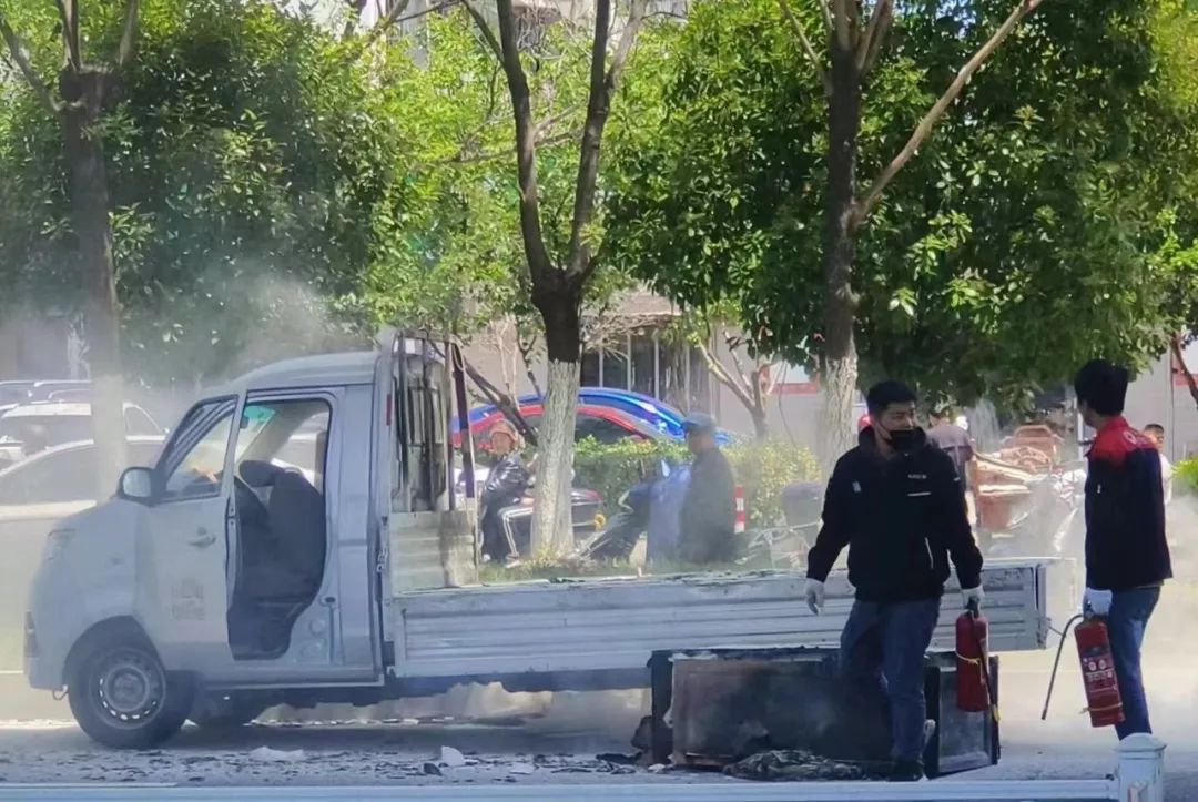 监控显示,5月9日上午11时36分左右,31路线驾驶员金浦驾驶苏J09797D行驶到西环路鹤翔路口附近时,发现一辆行驶中的小货车车后厢的货物燃起熊熊大火。发现着火后,车主立即停车设法扑救。