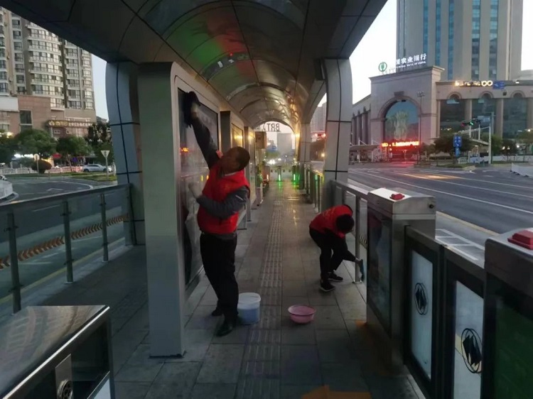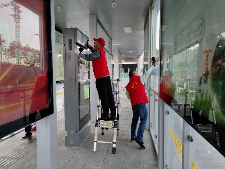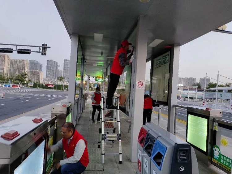 擦亮城市名片、劳动创造幸福—公交公司开展BRT站台专项清理志愿服务活动