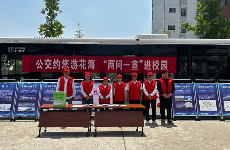 为贯彻落实《关于进一步释放消费潜力促进消费持续恢复的政策措施》文件精神,深入践行“我为群众办实事”实践活动,把问计于民、问需于民好事办实,6月6日上午,一分公司联合运营发展部组织志愿者来到盐城工学院希望大道校区,开展“公交约您游花海,‘两问一宣’进校园”志愿服务活动