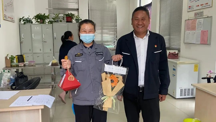 点滴关怀,滋润心田。“这种手工向日葵花很费时间,在这个特殊时期,收到你们这么用心的关怀和鼓励,我真的很感动,也切实感受到了公司大家庭的温暖。”收到祝福的B支4线驾驶员孙加珍激动地说。