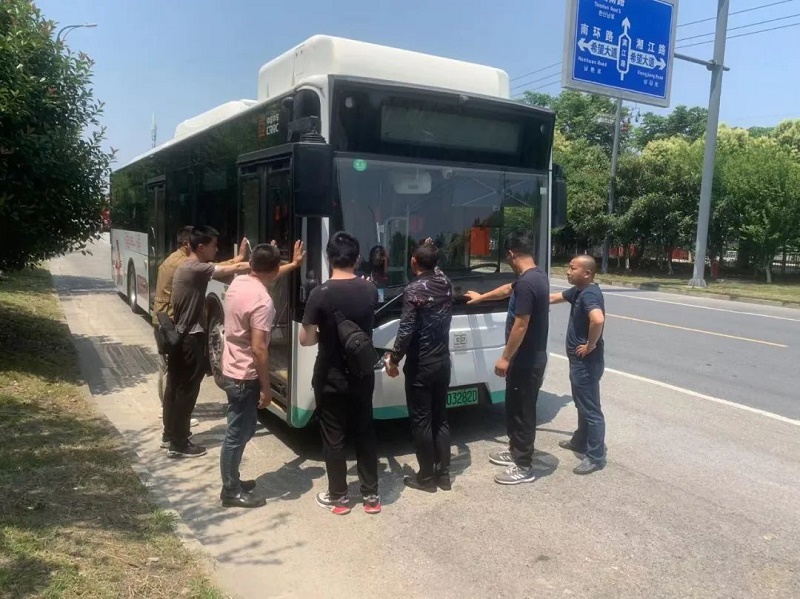 演练模拟一辆行驶的公交车,突遇群众以未设置公交车停靠站为由拦截车辆,不允许公交车通行的突发情况。面对群众拦截车辆,拍打车门的情况,驾驶员沉着冷静,紧闭车门,立即打电话向分公司报告情况。分公司立即启动群体事件专项应急预案,相关人员第一时间赶到现场,安排车辆疏导乘客,安抚群众情绪,向群众说明危害公共交通安全的后果。在工作人员的耐心沟通下,群众最终明白了事件严重性,陆续撤离了现场,线路恢复正常运营。