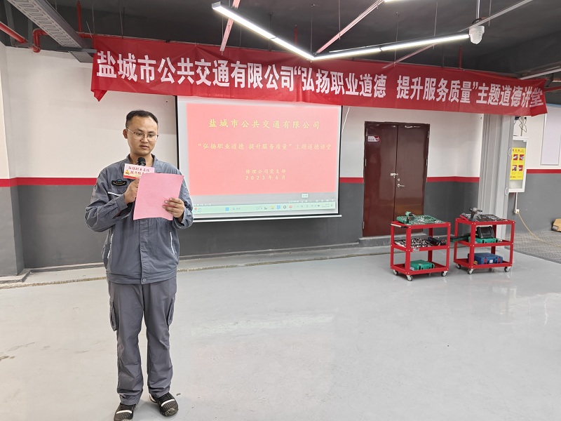 6月26日上午,修理公司党支部在胜利路公交停车场天猫养车门店举行了“弘扬职业道德 提升服务质量”主题道德讲堂。本次道德讲堂从会议室走进了车间,让道德讲堂形式更加多样、内容更加新颖。