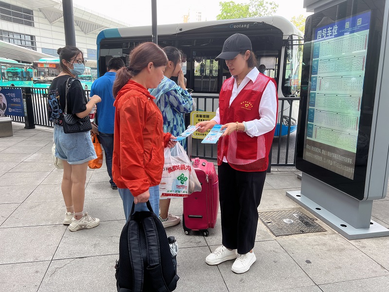 7月23日上午,服务公司党支部在综合客运枢纽西广场公交回车场开展了“绿色出行、优选公交”主题志愿者活动,倡议市民争做“绿色出行”的引领者、践行者、宣传者和示范者,积极选择乘坐公交等绿色出行方式。