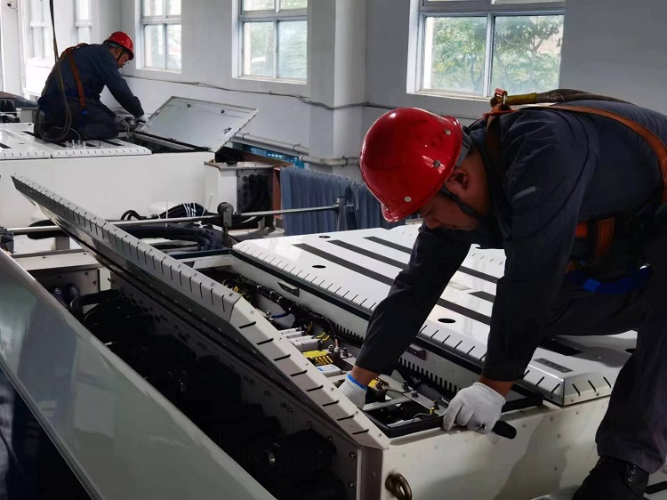 夏日炎炎,车厢内的温度即便是敞开车窗也依然让人觉得闷热,这时候汽车空调便开始发挥作用。由于公交车辆空调大部分都在车辆的顶部,给维修工作带来很大困难。维修人员需要做好充分安全防护,才能有效对车辆空调进行检修。在修理分公司空调专项维保场地上,修理人员必须佩戴好高空作业专用安全绳,登上安全作业架,在充分保障维修人员安全的情况下进行空调检修工作。