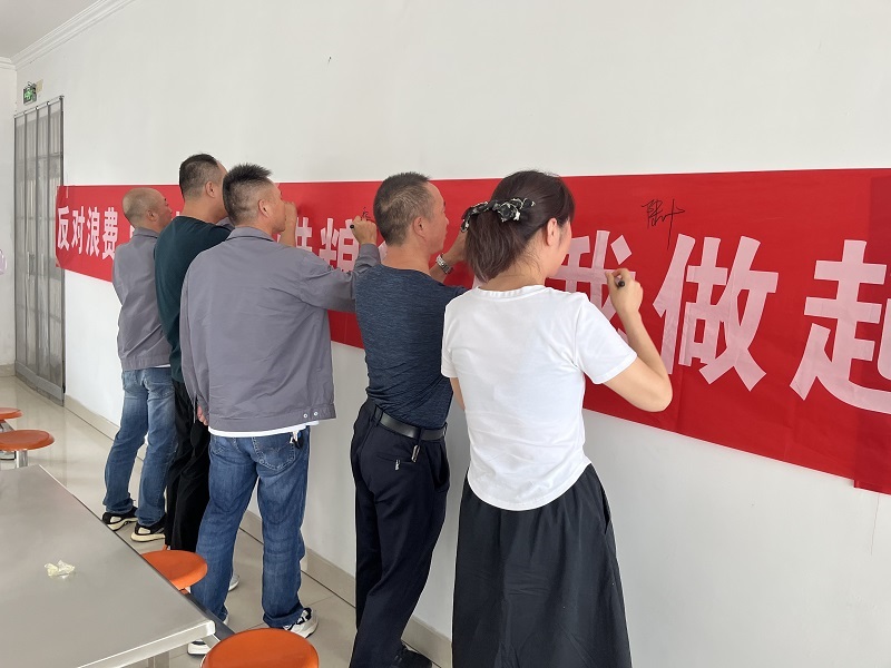 为大力弘扬中华民族勤俭节约的传统美德,坚决遏制餐饮浪费行为,7月31日中午,公司机关党支部利用中午职工集中就餐的时间,在公司食堂开展“反对浪费 崇尚节约 珍惜粮食 从我做起”主题签名活动,倡议广大职工以实际行动示范带动身边人,推动形成崇尚勤俭节约的浓厚氛围。