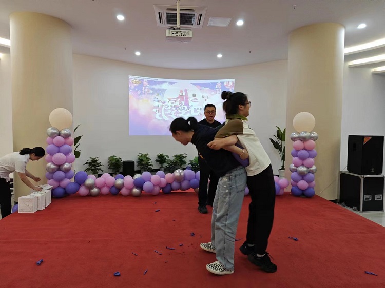 活动伊始,青年职工们分别做自我介绍,随后在主持人的引导下,进行了背靠背夹气球、合作运面粉、线上小游戏等趣味互动。