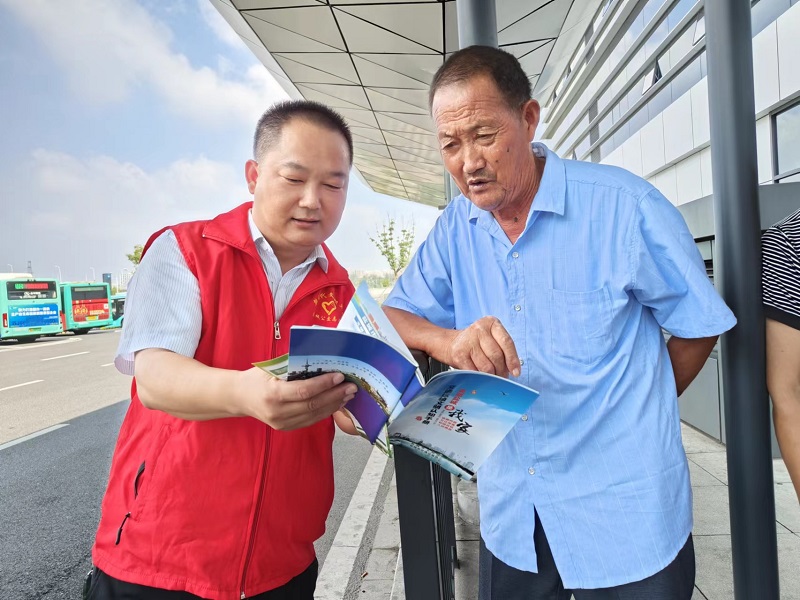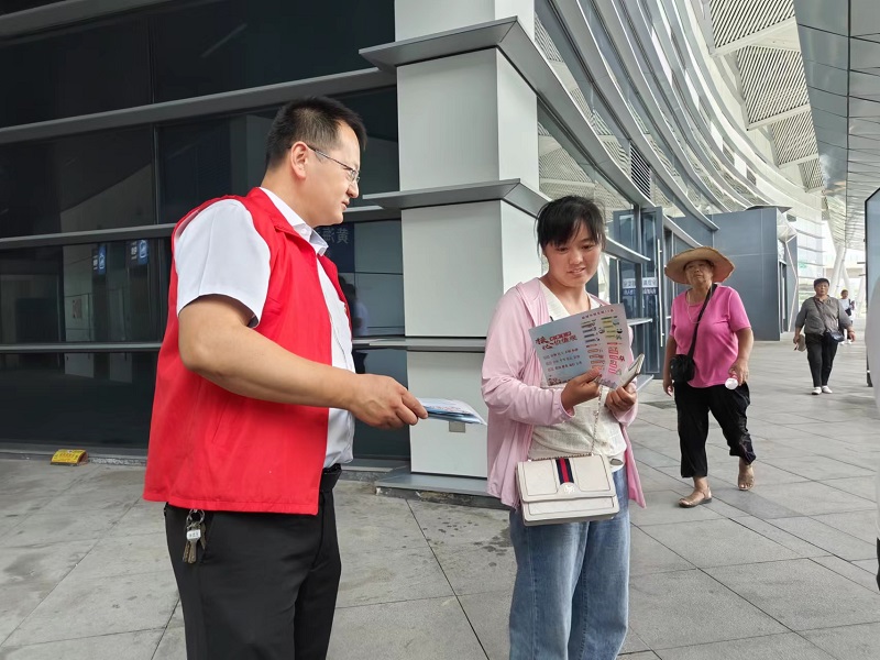 在高铁站西广场路口,志愿者通过引导的形式,劝导路人遵守交通规则,不闯红灯、不横穿马路、不乱穿机动车道,劝导机动车斑马线前减速慢行、礼让行人,进一步增强大家的交通安全意识和遵守交规的自觉性。