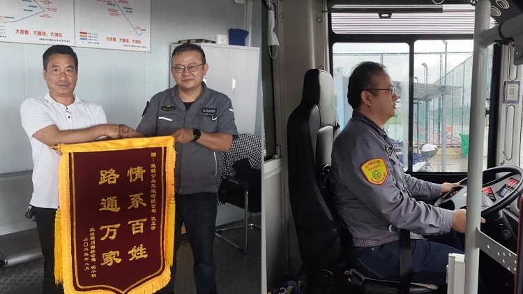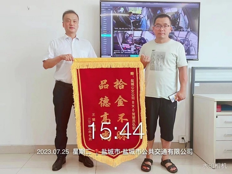 8月15日中午13时10分左右,人民路与黄海路路口一辆轿车失火,正在营运的B1线驾驶员仇正伟与30路驾驶员张正亮合力扑灭火情,车主沈先生送来了一面“路通万家、情系百姓”的锦旗表示感谢。