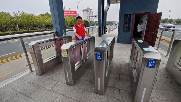 活动中,修理公司党支部书记严家军带领志愿者们用自备的水桶、抹布、扫把、垃圾袋等清洁工具,仔细擦拭站台安全门和防护栏,认真清理公交站牌及候车亭的灰尘、顽固污渍、小广告,去除站台“皮癣”、口香糖,仔细清扫站台及周边地面垃圾,把宣传橱窗、站牌以及站台区域地面打扫得一尘不染。