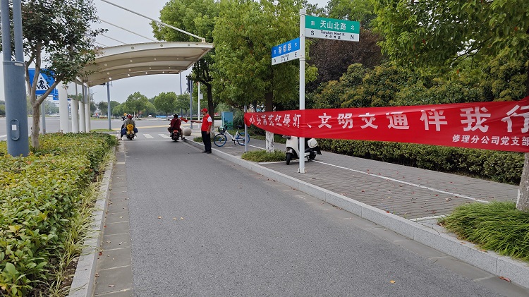 活动中,修理公司党支部书记严家军带领党员志愿者和入党积极分子,身穿红马甲、头戴小红帽,积极开展文明交通劝导,规劝行人、非机动车不闯红灯,不乱穿马路,不跨越护栏,不逆向行驶;引导机动车行经斑马线礼让行人;为需要帮助的行人提供暖心服务。