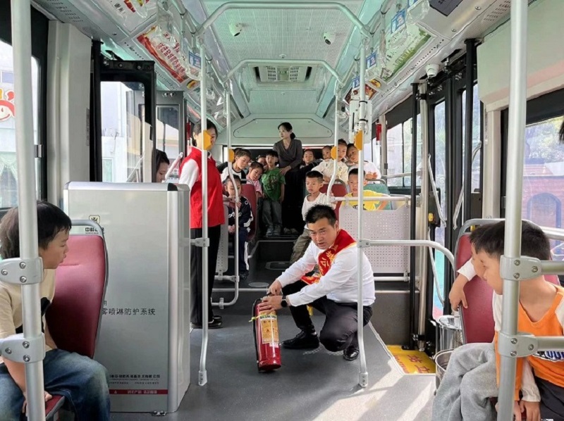 盐城市最美公交驾驶员、85路线路班长袁小权化身“安全讲解员”,在车厢内利用幽默亲切的语言向萌娃们普及了不同颜色座椅的含义、讲述了安全锤、灭火器等安全设施的使用方法及发生紧急情况时的自护自救知识。“沉浸式”体验让文明乘车、安全出行的意识根植于萌娃心中,逐渐结出文明之果。