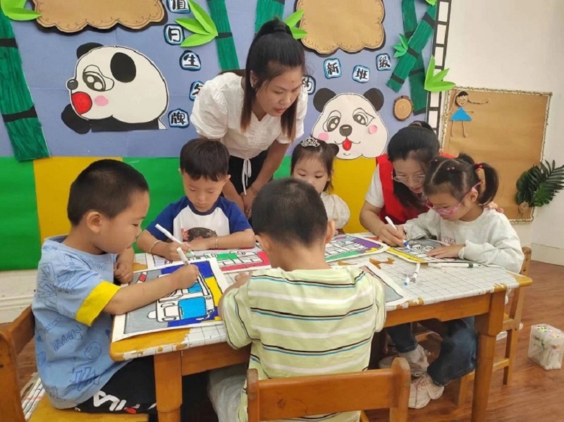 在涂鸦填色环节,萌娃们自由发挥想象力,选择自己喜欢的颜色搭配,在画纸上尽情涂抹,用稚嫩的画笔传递优选公交绿色出行理念,用缤纷的色彩表达对美好生活的热爱。